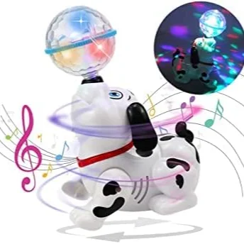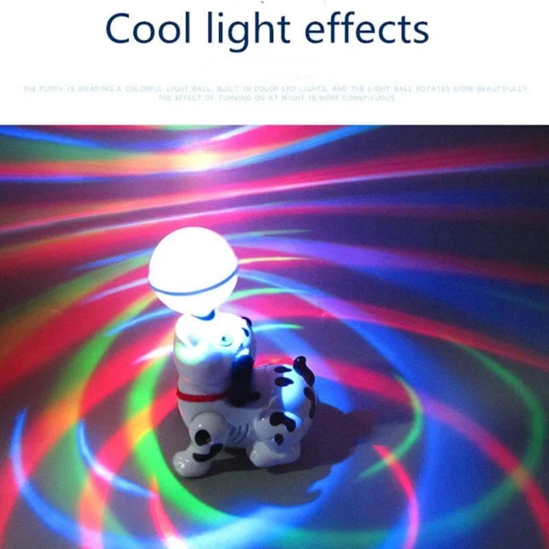 🔊 Flashing Lights & Fun Music: Engaging music and colorful light show from the rotating dome on top of the dog’s head.